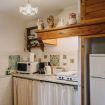 Also on this floor, through an arched door, you enter a studio apartment with direct access to the outside, consisting of: a spacious double bedroom with ensuite bathroom (with shower), a table with two chairs, and a small kitchen placed inside a closet (with fridge and stove).