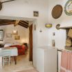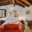 Questo cottage monolocale è stato ricavato dalla ristrutturazione di un antico forno e granaio di cui rimangono le caratteristiche, ed è caratterizzata da soffitti in legno e vecchio mobilio toscano.