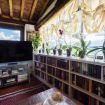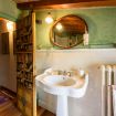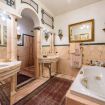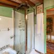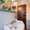 On the main floor guests will be welcomed by a large and bright open-space living area, elegantly furnished with sofas (including a double sofa bed), armchairs, fireplace, tv, bookcase, carpets, and direct access to a terrace. Following is a large dining room (with 2 tables and fireplace), and a small sitting room with two sofas, bookcase and tv.