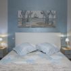 The sleeping area is located along the corridor, and consists of 2 double bedrooms (including one with a balcony with washer-dryer) and 1 twin bedroom (with two single beds).