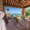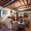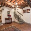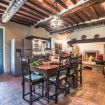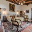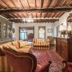 Piano terra: Ad accoglierci una luminosa zona giorno con divani, poltrone, un grande caminetto del '400 e un tavolo da pranzo per 14 persone. Da qui è possibile ammirare una vista stupenda sul giardino e piscina e in lontananza sull'antico borgo di Monsummano Alto.