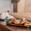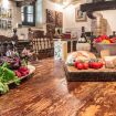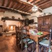 A seguire un salotto e una spaziosa cucina con caminetto e forno in stile antico.