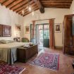 Tutte le camere da letto su questo piano sono caratterizzate da antichi pavimenti in cotto e travi, restaurati con gusto dai proprietari.