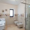 To the left of the main entrance you will find the sleeping area, consisting of 1 double bedroom and 2 triple bedrooms (a double bed + a single bed). The triple bedrooms have an ensuite bathroom (with shower) while a third bathroom (with shower) is located along the corridor.