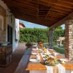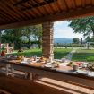 La proprietà, il cui accesso è garantito da due cancelli, è circondata da un giardino privato molto curato con prato e fiori. Dispone di una loggia attrezzata con tavolo da pranzo per 20 persone, per mangiare all'aria aperta, immersi nella tranquillità della campagna. Troviamo, inoltre, un grande barbecue in muratura e un forno a legna completamente restaurato, ideale per preparare gustose pizze in compagnia di amici.