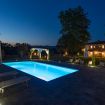 Gli spazi esterni sono impreziositi da una bellissima piscina (10 x 5 m, profondità 1,35 m), dotata di solarium, doccia solare (con acqua calda) e gazebo con tavolini e sedie.