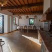 Dalla cucina si accede a una spaziosa sala da pranzo con tavolo fino a 16 persone, un grande camino e accesso diretto sulla loggia esterna.