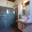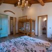 Primo piano: Il piano superiore (accessibile salendo delle scale sia dalla sala da pranzo sia dal soggiorno) è dedicato alla zona notte, formata da 5 grandi camere, tutte dotate di bagno ensuite con doccia. Le camere sono così ripartite: due matrimoniali, una tripla (1 letto matrimoniale + 1 letto a castello), una tripla (1 letto matrimoniale + 1 letto singolo aggiunto su un comodo soppalco), una tripla (1 letto alla francese + 1 letto singolo).
