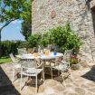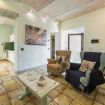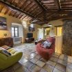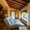 Beneath the patio, a cozy lounge area with a sofa and armchairs invites you to unwind. It’s the ideal spot for sunset aperitifs, sipping a glass of fine wine while soaking in the breathtaking Chianti landscape.