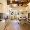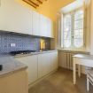 A seguire una cucina attrezzata, una stanza di servizio (con lavatrice) e un bagno con doccia.