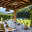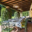 Surrounded by a tall and lush bamboo forest, the property boasts a large garden with lawn, brick barbecue, and private parking for 5 cars. Under the long patio you will find a lounge area with armchairs and sofas, and a dining table for 12 people, ideal for alfresco meals.