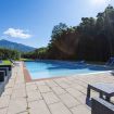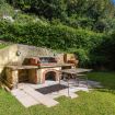Circondata da un bosco di bambù alto e lussureggiante, la proprietà dispone di un grande giardino con prato, barbecue in muratura e parcheggio privato per 5 macchine. Sotto il lungo patio troviamo una zona relax con poltrone e divanetti, e un'area pranzo con tavolo per 12 persone, ideale per trascorrere piacevoli pasti all'aria aperta.