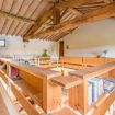 Ground floor: The main entrance leads to a bright living room, furnished with 2 sofas and 2 armchairs. Following is a large dining room with a wooden table for 12 people, and a large wooden kitchen. The kitchen is fully equipped with: table, stove, oven, dishwasher, refrigerator, toaster, coffee machine, and kettle.