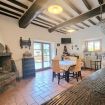 L'ingresso a piano terra ospita un vecchio forno a legna (tutt'ora funzionante) e un grande salone comune, ricavato dalle vecchie stalle, con due archi in mattoni, camino, divano e vari tavoli da pranzo.