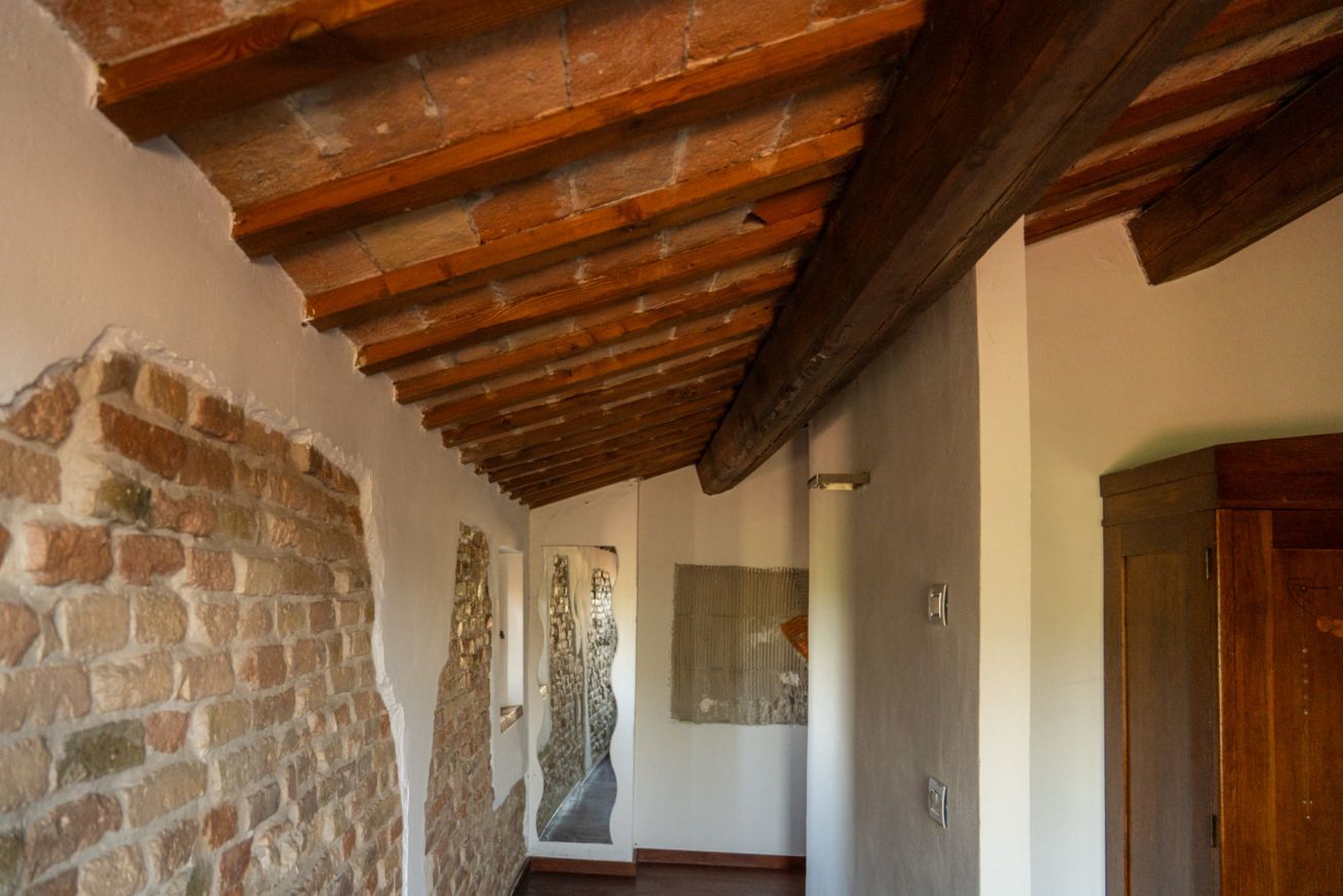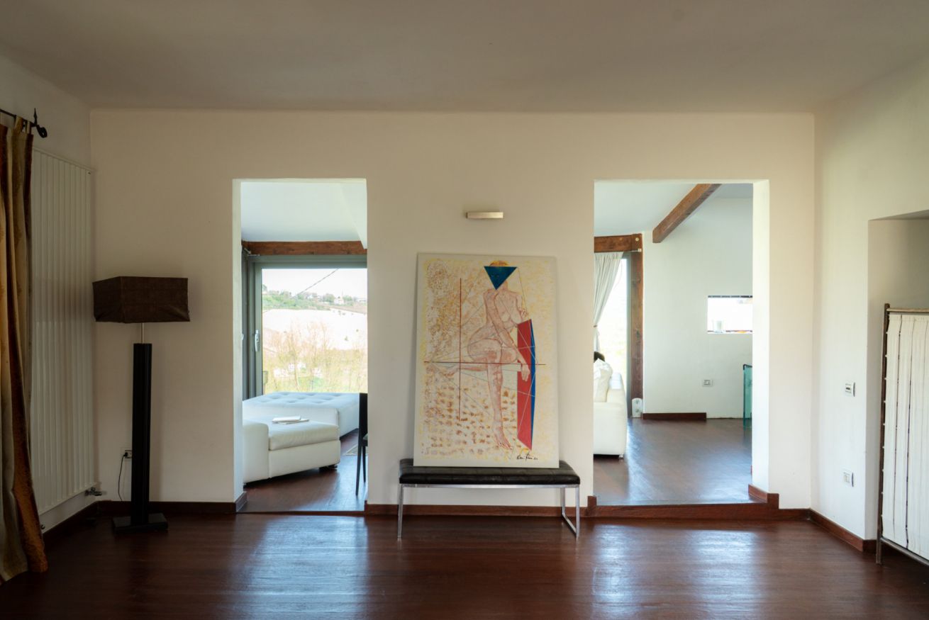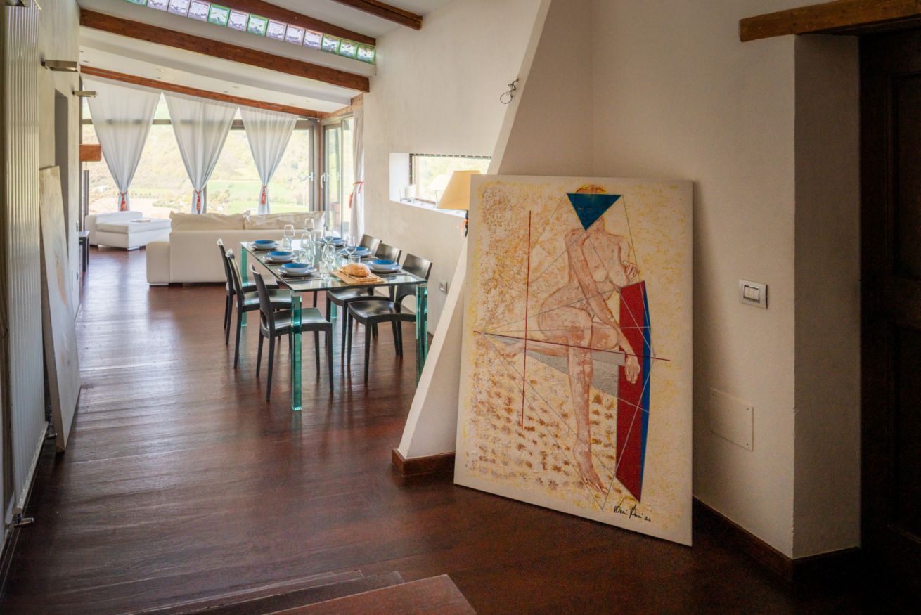 Ground floor: The ground floor of the villa is entirely dedicated to the living area. Here you will find an elegant living room with a sofa and a decorative fireplace, a charming feature that helps create a warm and inviting atmosphere. The space is enhanced by contemporary furnishings, design pieces and original artworks by the artist Duccio Ducci, giving the house a distinctive and refined character.