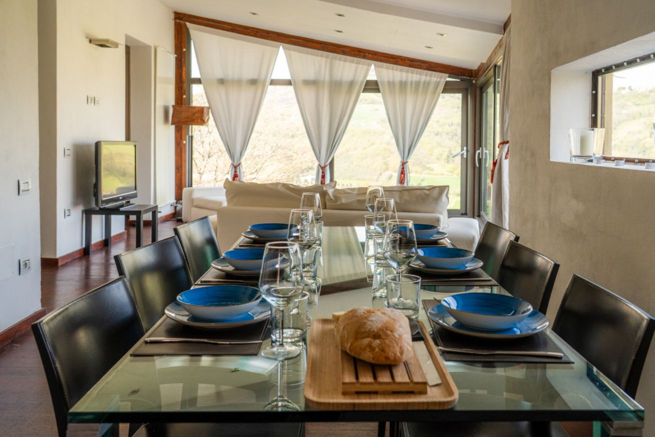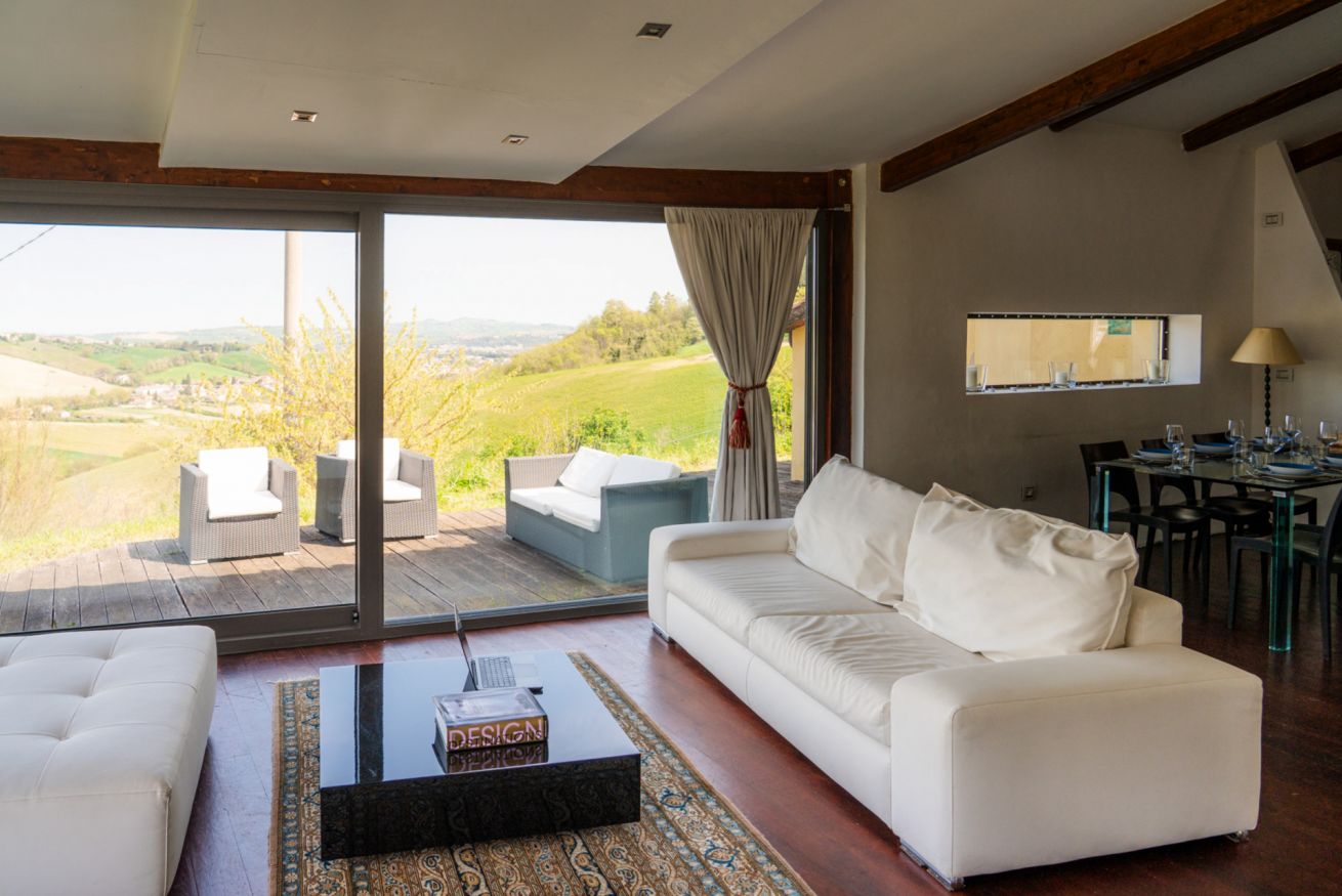 Exclusive panoramic villa with private pool and garden, nestled among the hills of the Marche region, near Urbino. It can accommodate up to 8 people and features 4 bedrooms and 4 bathrooms.