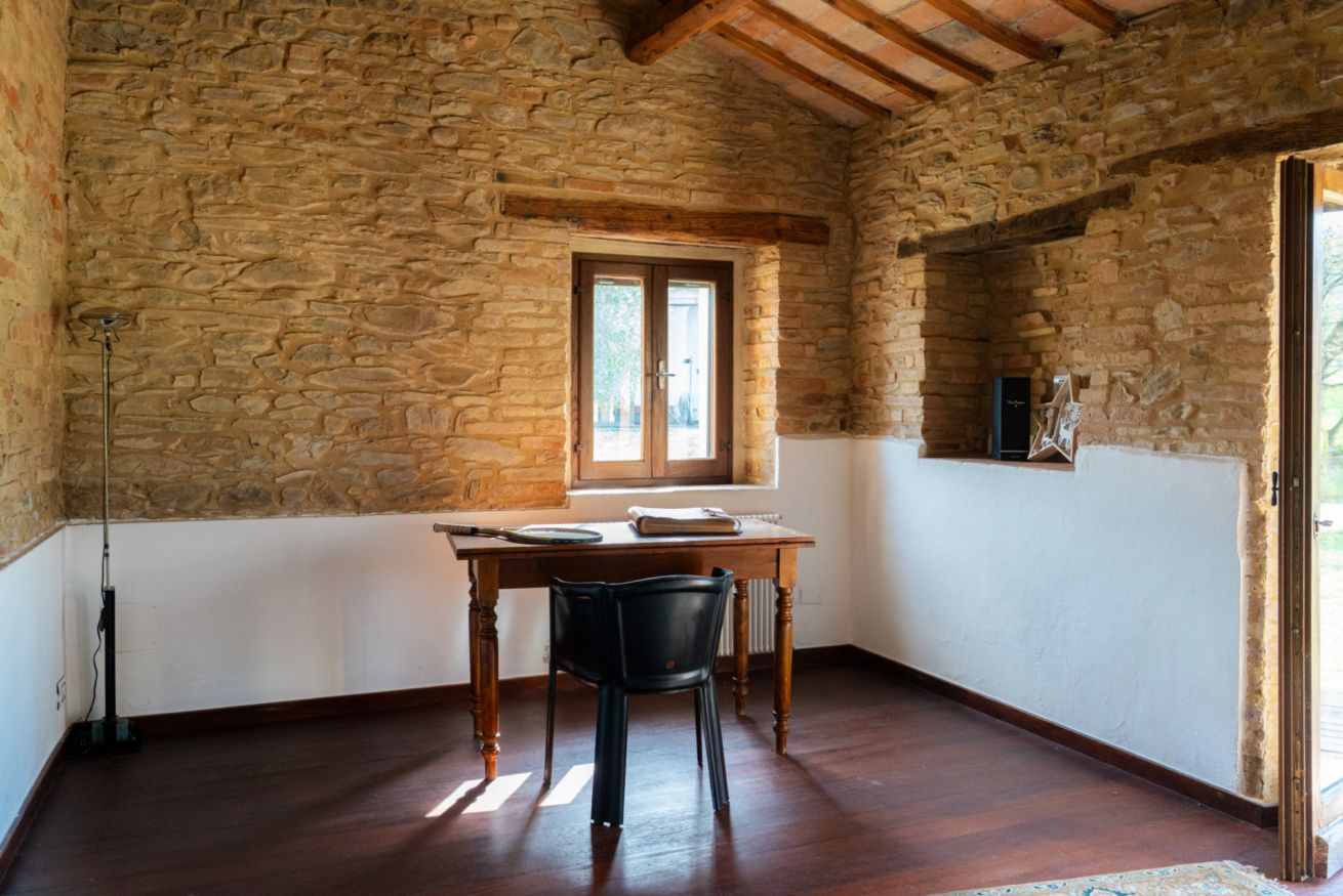 Villa Canarecchia stands amidst the gentle hills of the Montefeltro region, offering a privileged panoramic location in the heart of one of the most enchanting landscapes of the Marche countryside. The property is surrounded by a spacious private garden, where lush green lawns alternate with centuries-old olive and oak trees, creating an atmosphere of perfect harmony with nature.