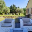 The outdoor spaces are further enhanced by an elegant shaded patio, ideal for alfresco lunches and aperitifs, featuring a dining table, a comfortable lounge area with sofa and armchairs, large umbrellas, and a barbecue perfect for hosting memorable outdoor gatherings.
