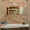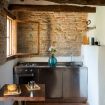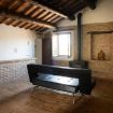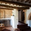 First floor: The upper level welcomes guests with a second living room, furnished with a comfortable sofa and an antique stove that contributes to an intimate and cosy atmosphere. The combination of stone and wood, together with the warm tones of the furnishings, makes this space particularly inviting and charming.