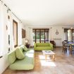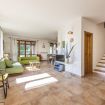 Piano terra: Dall'ingresso si accede ad un'ampia area living con divani, tavolo da pranzo, angolo cottura e porta finestra con affaccio diretto sul porticato attrezzato. Segue uno studio con divano letto matrimoniale, un bagno con doccia e una stanza adibita alla lavanderia (con lavatrice).