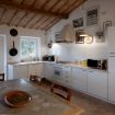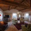 First floor: On the top floor you are welcomed by a spacious and bright living area, expertly furnished with: sofa, armchairs, fireplace, tv, dining table, and kitchen. The kitchen is fully equipped with: oven, stove, toaster, refrigerator, coffee machine, dishwasher, and microwave.