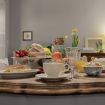 The apartment also has an outdoor area with gazebo, breakfast table, and chairs.