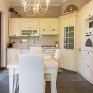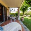 The heart of the outdoor area is a large covered patio, furnished with elegant wicker sofas and armchairs, ideal for moments of outdoor relaxation. Completing the setting is a large dining table for 8 people, perfect for convivial lunches and dinners under the Tuscan sky.