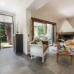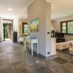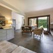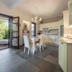From the kitchen, you can access the outdoors directly, where an elegant al fresco dining area and a cozy relaxation corner with chairs and chaise longues invite you to unwind and enjoy moments of peace surrounded by greenery.