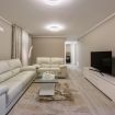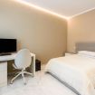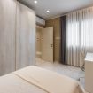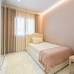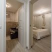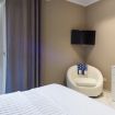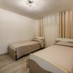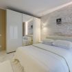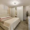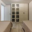 The sleeping area consists of: 1 double bedroom with wardrobe and tv; 1 bedroom with French bed, desk, tv and wardrobe; 1 bedroom with French bed and wardrobe.