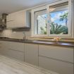 The villa boasts a well-kept and fully fenced garden with a high hedge, lawn and palm trees.