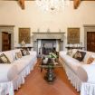 Ground floor: The ground floor houses the living area, made up of: three elegant lounges furnished in Tuscan style with antique furniture and large windows overlooking the garden; a large dining room that can seat up to 14 people; a large kitchen, fully equipped with: breakfast table, oven, stove, refrigerator with ice maker, dishwasher, toaster, microwave, and coffee machine.