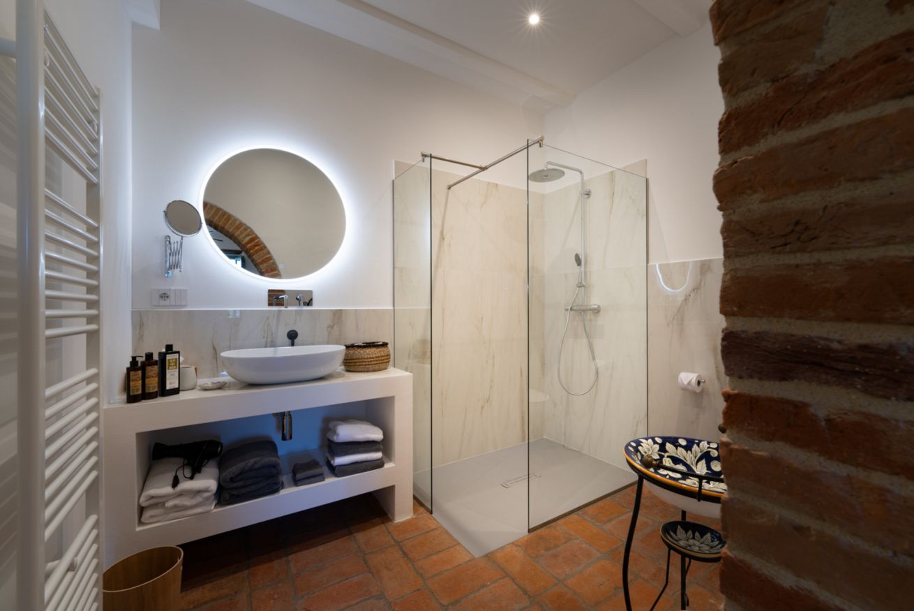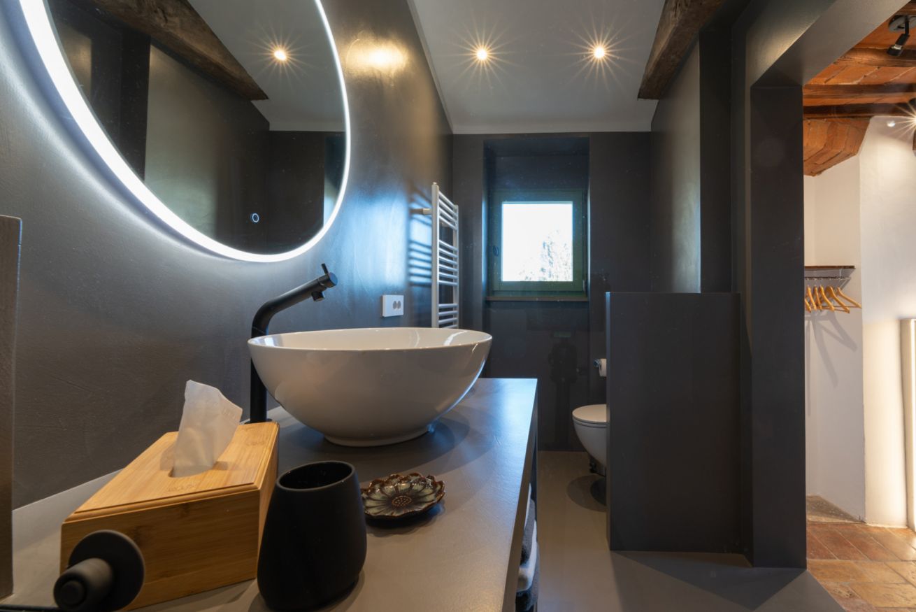 Di origine ottocentesca e finemente restaurata, la villa unisce con armonia il fascino dell’architettura storica al comfort del design contemporaneo. Gli ambienti, arredati con gusto moderno, dialogano elegantemente con la pietra a vista, creando un piacevole contrasto tra tradizione e modernità, arricchito da servizi pensati per garantire il massimo benessere durante il soggiorno.