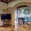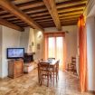 Apartment 3: Located on the first floor, this apartment for 7 people is spread over 2 levels (ground floor and mezzanine) offering a splendid view over the garden, Spello and Mount Subasio. The ground floor consists of: 1 double bedroom with wardrobe; a bathroom with shower; a spacious living area with tv, fireplace, dining table, double sofa bed, and a kitchen equipped with stove, fridge, oven, and electric kettle. Going up a short staircase you can reach the mezzanine where there is 1 double bed and 1 single bed.