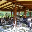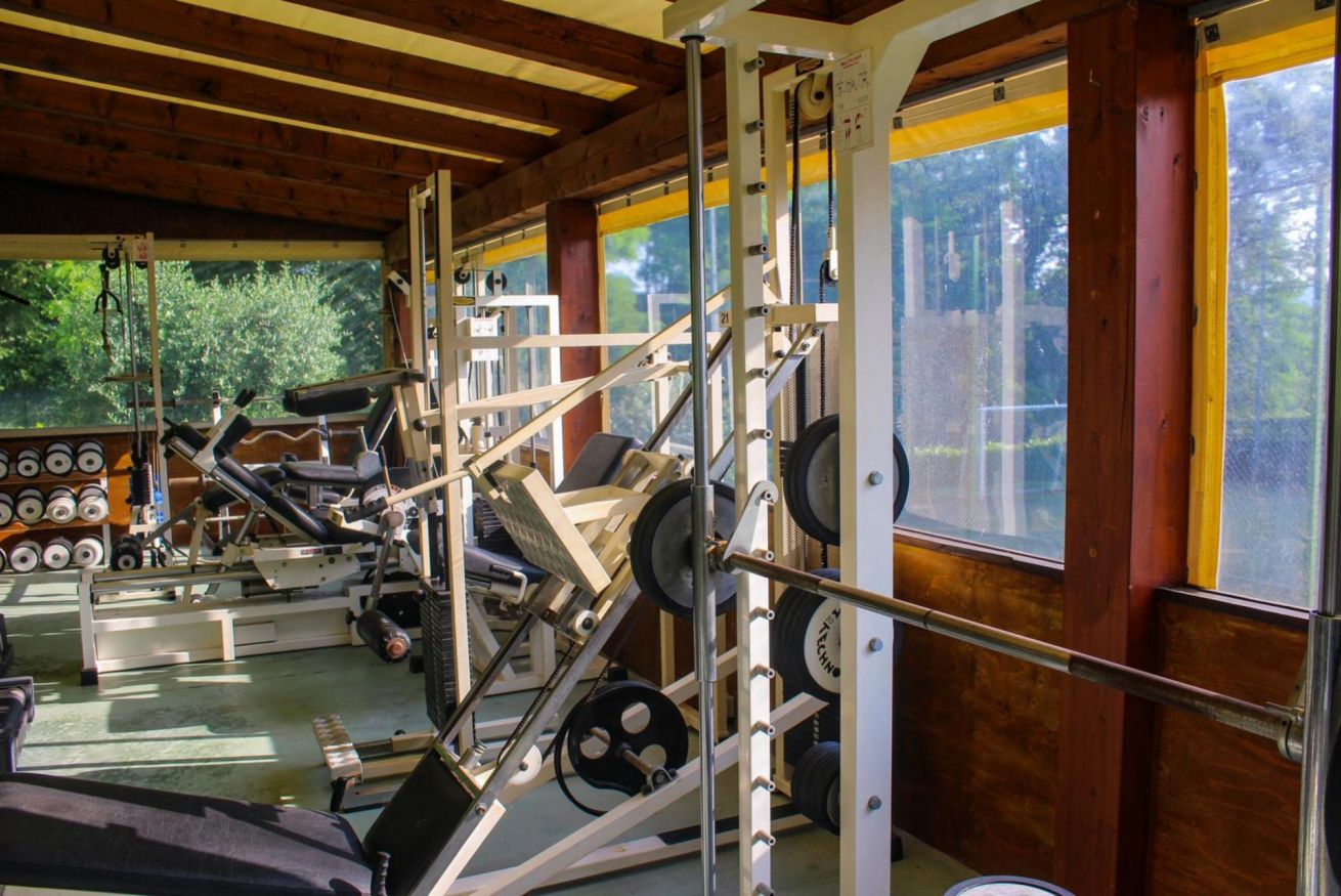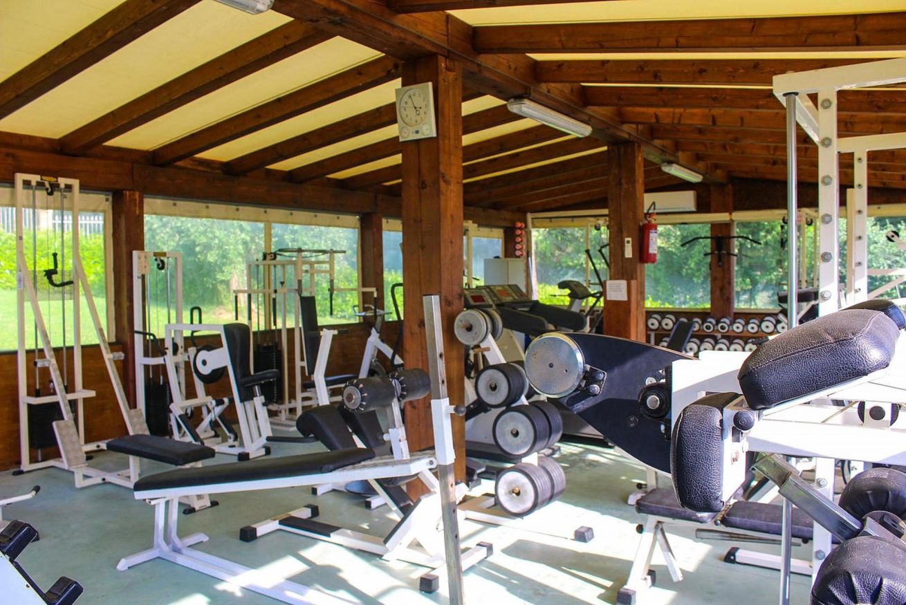 - Palestra attrezzata (aperta tutto l’anno, a pagamento), dotata di macchinari professionali per ogni esigenza di allenamento. Durante la stagione estiva si apre verso l’esterno, offrendo la possibilità di allenarsi a contatto diretto con il paesaggio circostante.