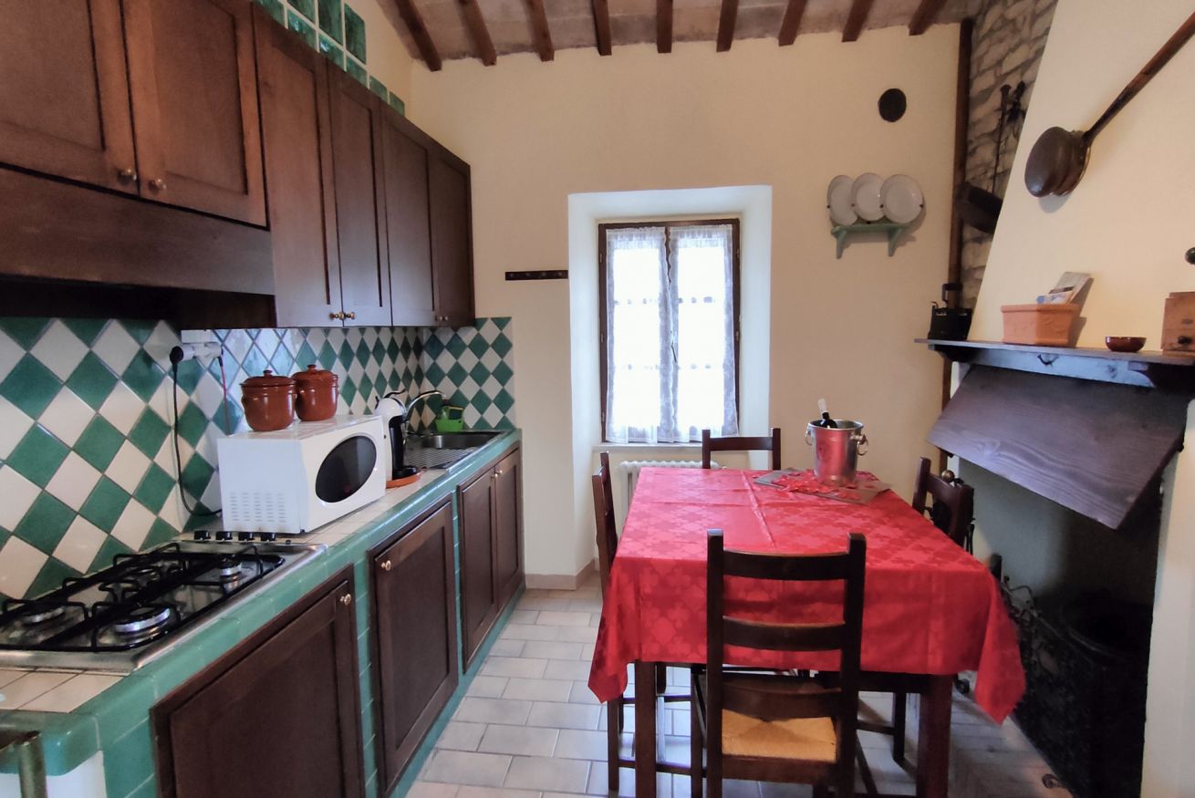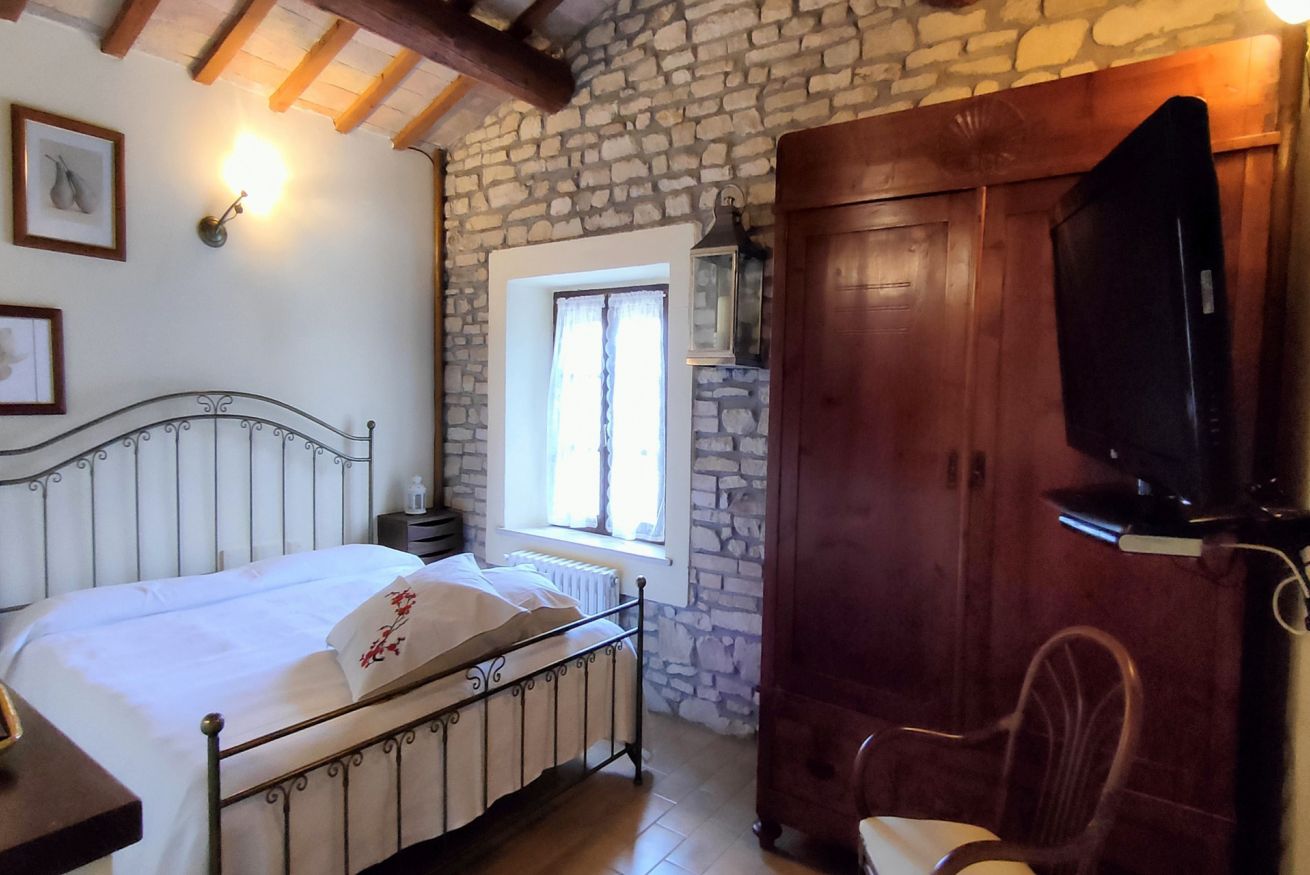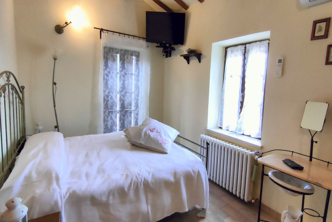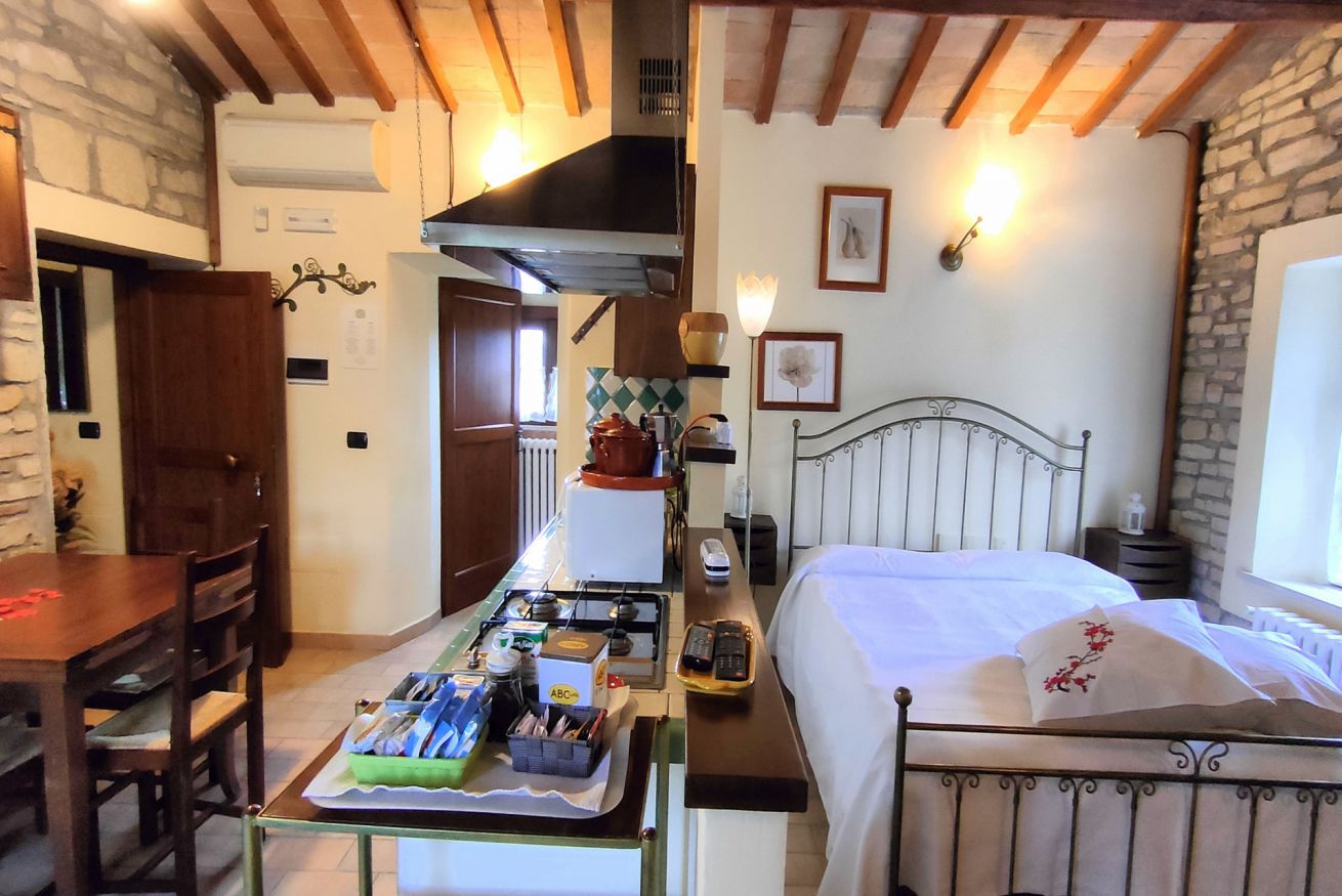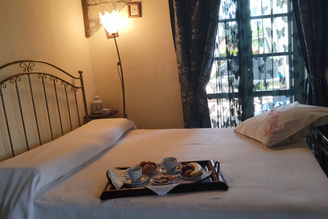 - Appartamento 1 (25 mq, 2 ospiti): grazioso monolocale in pietra al piano terra con ingresso indipendente. Offre un angolo cottura attrezzato con fornelli, microonde, macchina da caffè e area tisaneria, un tavolo da pranzo e 1 letto matrimoniale. Il bagno privato è dotato di doccia. L’alloggio dispone inoltre di un balcone panoramico con splendida vista su giardino, piscina, montagne e cortile interno, oltre a uno spazio esterno esclusivo con tavolo e sedie, perfetto per mangiare all’aperto in totale privacy.