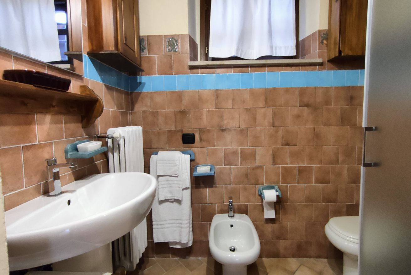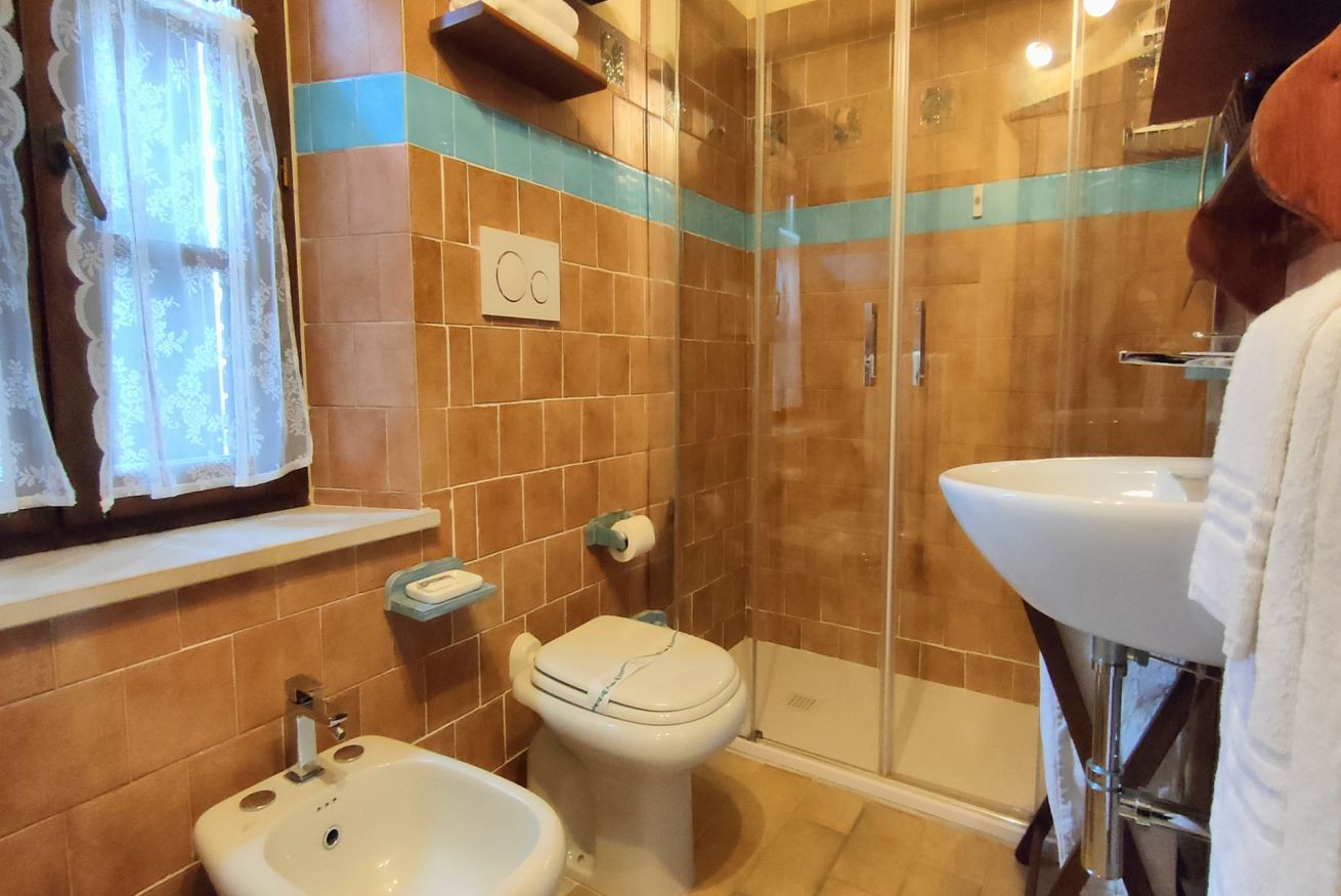 - Appartamento 3 (45 mq, 4 ospiti): confortevole bilocale situato al primo piano, con ingresso esterno lato strada e scala condivisa con l’Appartamento 4. È composto da angolo cottura attrezzato con fornelli, microonde, macchina da caffè e area tisaneria, zona pranzo con tavolo, divano letto singolo, 1 camera matrimoniale e bagno privato con doccia. Gode di una splendida vista su giardino, piscina, montagne e cortile interno. Completa la proprietà uno spazio esterno dedicato con gazebo e barbecue, ideale per rilassarsi e vivere momenti all’aria aperta.