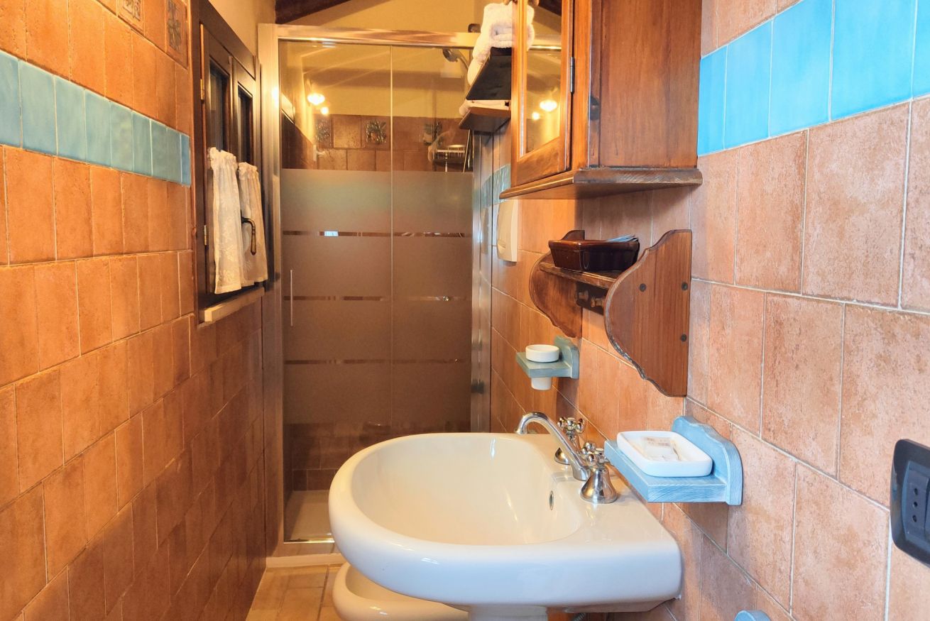- Piscina privata recintata (12 x 6 m, profondità fino a 2 m), situata su un livello inferiore del giardino e aperta dal 15 Aprile al 15 Ottobre. È completa di area idromassaggio, doccia esterna e zona solarium attrezzata con lettini, sdraio e ombrelloni.