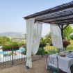 - Ampio portico coperto con eleganti tende bianche, arredata con tavoli da pranzo, lettini prendisole e confortevoli salotti outdoor: lo spazio perfetto per condividere momenti conviviali in totale privacy.