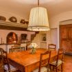 L'intero piano inferiore mantiene l'originario aspetto quattrocentesco. La cucina completamente attrezzata è aperta, spaziosa, luminosa e dispone di un tradizionale camino toscano e forno per il pane. Accanto alla cucina si trova la sala colazione.