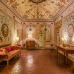 Il piano terra, interamente decorato con affreschi, è composto dal grande ingresso, soggiorno blu, salotto, studio, sala da ballo che è una delle stanze più antiche della villa, sala da pranzo con posti a sedere per un massimo di 20 ospiti e una camera da letto con bagno privato.