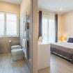 Primo piano: Una scala conduce al primo piano dove si trovano 3 camere triple (1 letto matrimoniale + 1 letto singolo per ciascuna) e 1 camera matrimoniale, tutte provviste di bagno privato (doccia) e tv satellitare, e caratterizzate da un design raffinato e minimalista.