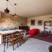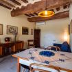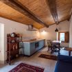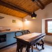 Apartment 3 (45 sqm): A newly built studio apartment adjacent to the pool with a view over the hills. Accommodating up to 4 people, it features a large private terrace overlooking the pool and surrounding landscape. The interior boasts a high ceiling with exposed wooden trusses and large windows that flood the space with natural light. Inside you will find: a double sofa bed, modern kitchen, dining table, double bed (with movable headboard and armrests), and ensuite bathroom (with shower).