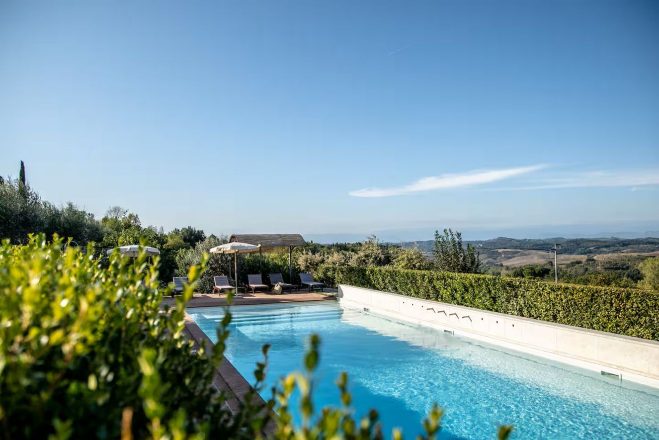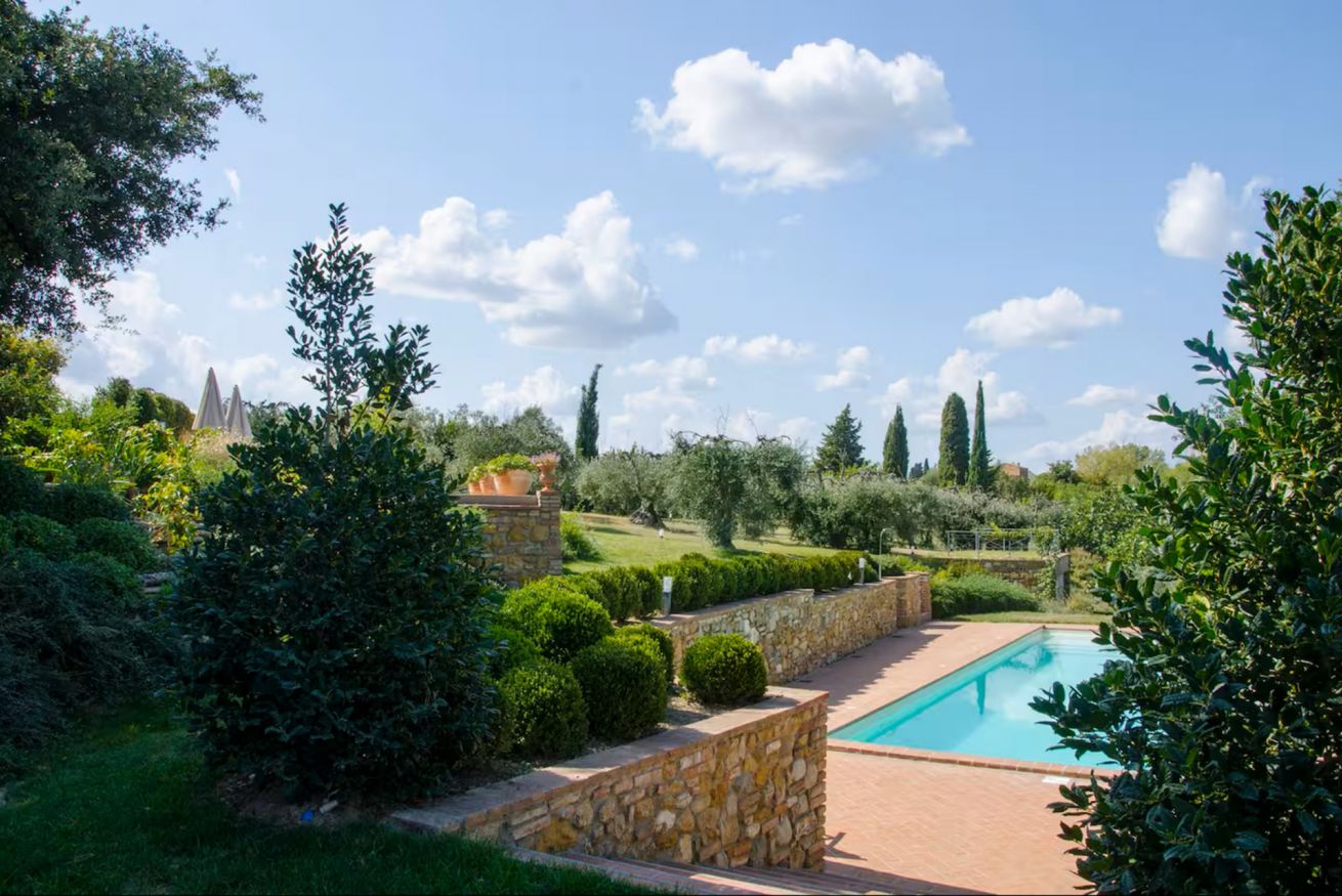 Il cuore degli spazi esterni è la splendida piscina privata (6 x 15 m, profondità da 20 a 180 cm), aperta da Aprile a Ottobre e attrezzata con lettini, ombrelloni e doccia esterna. Da qui lo sguardo si perde tra le colline toscane, regalando un’atmosfera di assoluto relax e armonia con la natura.
