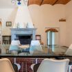 Proseguendo, troviamo una spaziosa e luminosa sala da pranzo con camino, perfetta per cene conviviali, una sala tv con comodo divano e un ampio ed elegante soggiorno arredato con divani e poltrone, pensato per rilassarsi e socializzare. Il piano si completa con un bagno dotato di doccia.