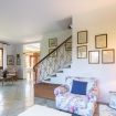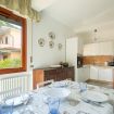 Piano terra: Salendo 6 scalini si raggiunge il piano terra che è dedicato alla zona giorno. Troviamo, infatti, un luminoso soggiorno, arredato con divano, poltrone e tv. Segue una spaziosa cucina, attrezzata con: tavolo da pranzo per 6 persone, frigo, lavastoviglie, forno, bollitore, macchina da caffè e tostapane.