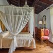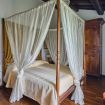 First floor: The top floor is dedicated to the sleeping area, consisting of: 1 double bedroom with canopy bed, air conditioning, private balcony, and adjacent bathroom with bathtub/shower; 1 double bedroom; 1 single bedroom with air conditioning and adjacent bathroom with shower.
