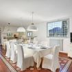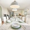 Piano terra: Ad accoglierci un'ampia e luminosa sala da pranzo con tavolo, caminetto, tv satellitare e cucina moderna, attrezzata con: tavolo da colazione, forno, fornelli, microonde, bollitore, macchina da caffè, tostapane, frigorifero e lavastoviglie. Dalla sala da pranzo si accede direttamente all'esterno. Proseguendo troviamo una lavanderia con lavatrice e asciugatrice.