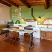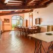 Piano terra: Al piano terra della villa troviamo una grande zona giorno comune con tavolo da pranzo per 20 persone, cucina attrezzata e camino. Successivamente si collocano 2 appartamenti: