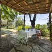 Circondata da un giardino recintato con olivi, mandorli e cipressi, la villa dispone di una piccola pergola arredata con tavolino e sedute, che funge da area lounge, ideale per rilassarsi, immersi nella natura.
