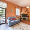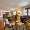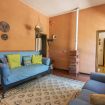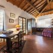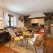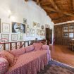 Primo piano: Il piano superiore è accessibile sia da una scala interna in legno che da una scala esterna con tipica loggetta. La zona giorno è formata da un soggiorno (con camino, divano letto singolo e divano) e uno studio (con libreria, scrivania e divano letto singolo).
